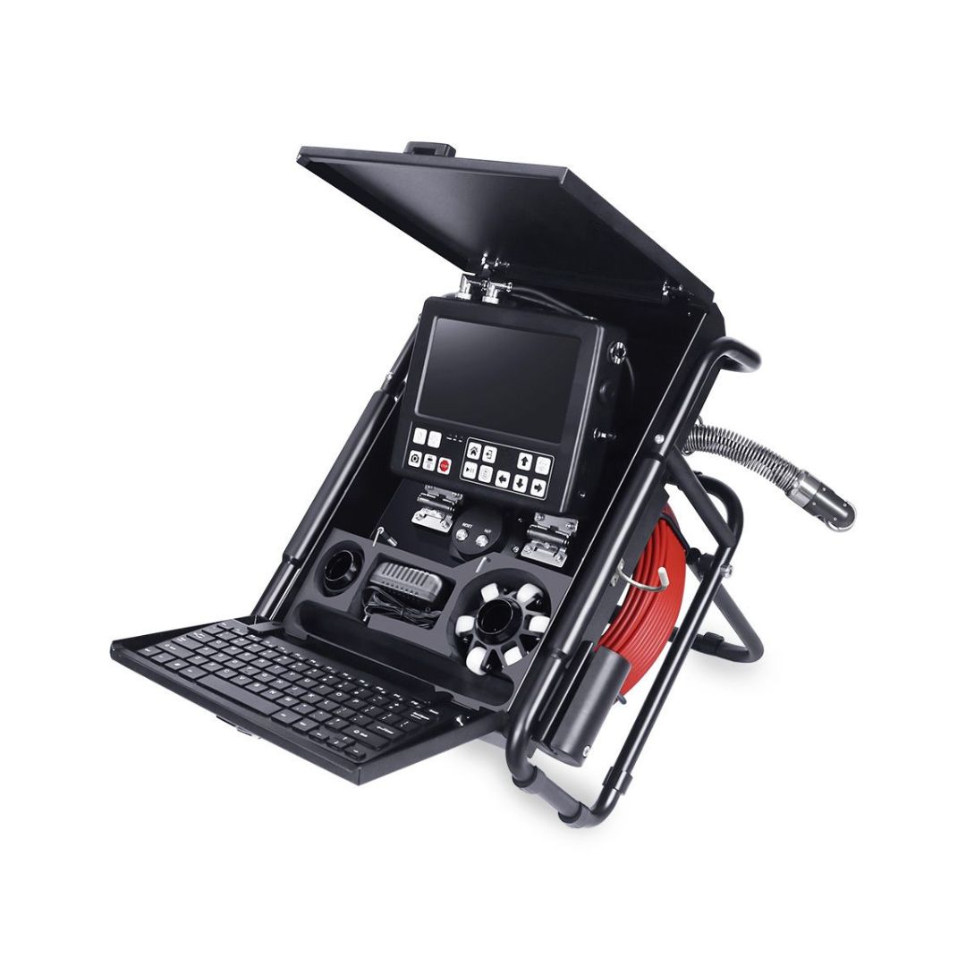 360 degree rotation camera head, Pan 360°,Tilt 180° 2. 1/3 CMOS, 2.0MP pilex HD camera head, waterproof up to5bars3. 8 inch IPS lcd screen, 1280*720 resolution 4. DVR control box with audio ,video recording and photographyfunction 5. 20m to 50m 7mm fiberglass cable 6. USB wireless keyboard to typewrite the words 7. Camera video resolution :1080P 8. Built- in 6800mA li-ion battery inside ,support uint workingmorethan 6 hours 9. Digital meter counter function, error is less than 1%